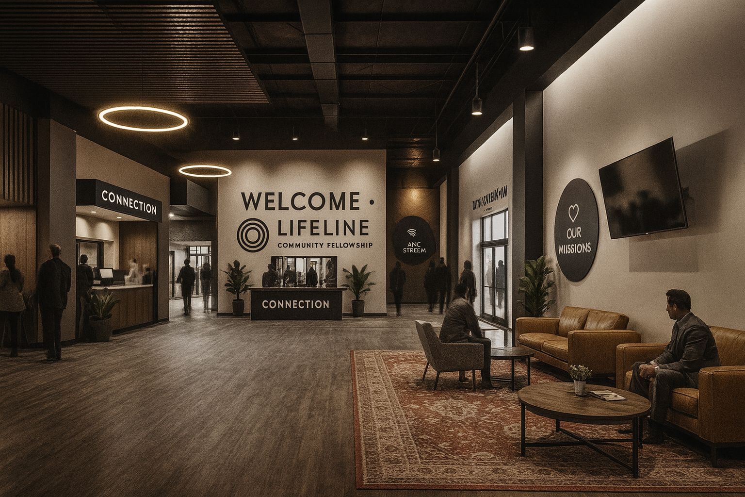 Our welcome area is hospitality in motion. Comfortable seating, clear next steps, and prayer available every service—because first impressions should feel like family.