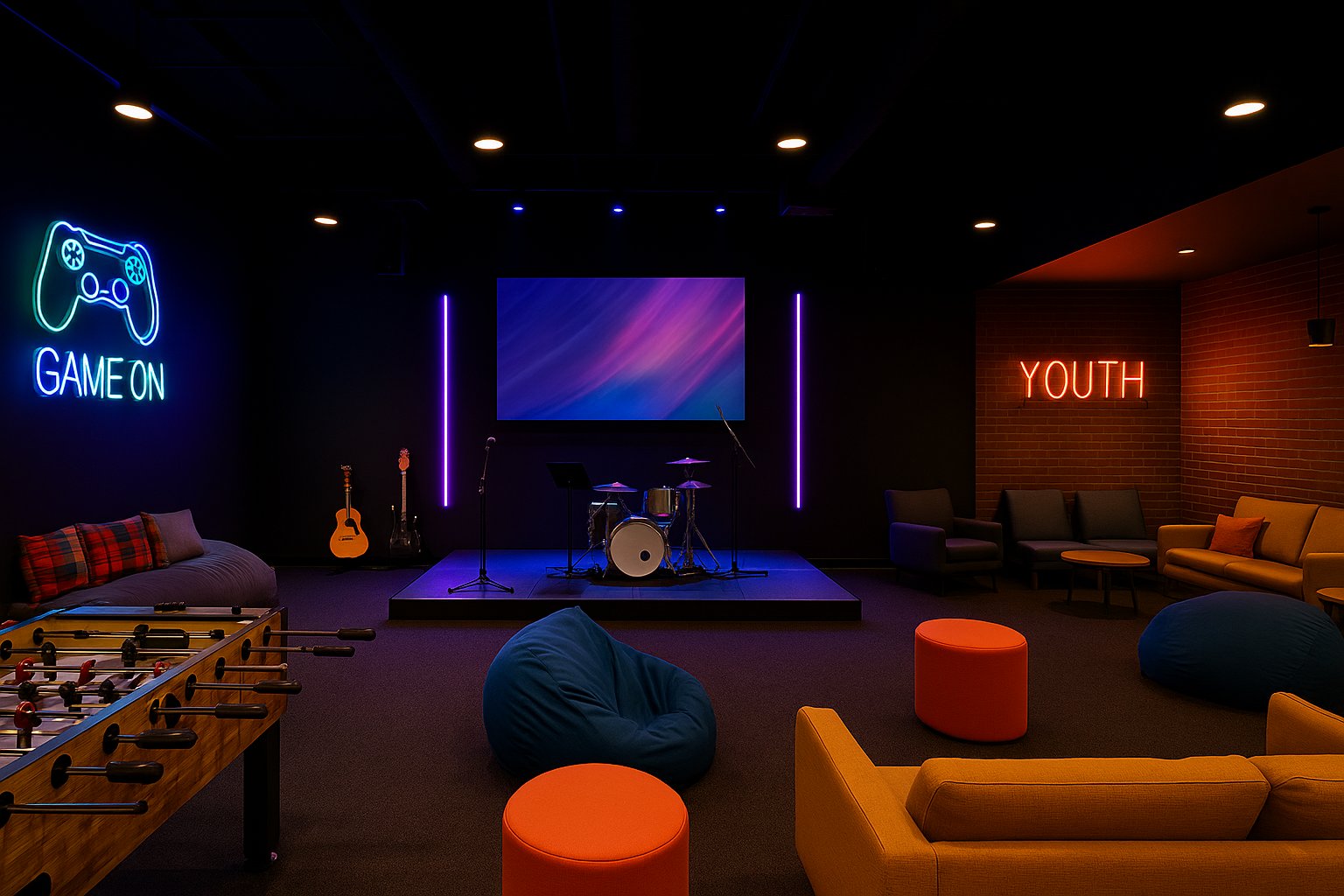 We're creating a high-energy space built for weekly youth services, worship nights, and small groups. The environment says, "We prepared this for you"—and invites students to lead.